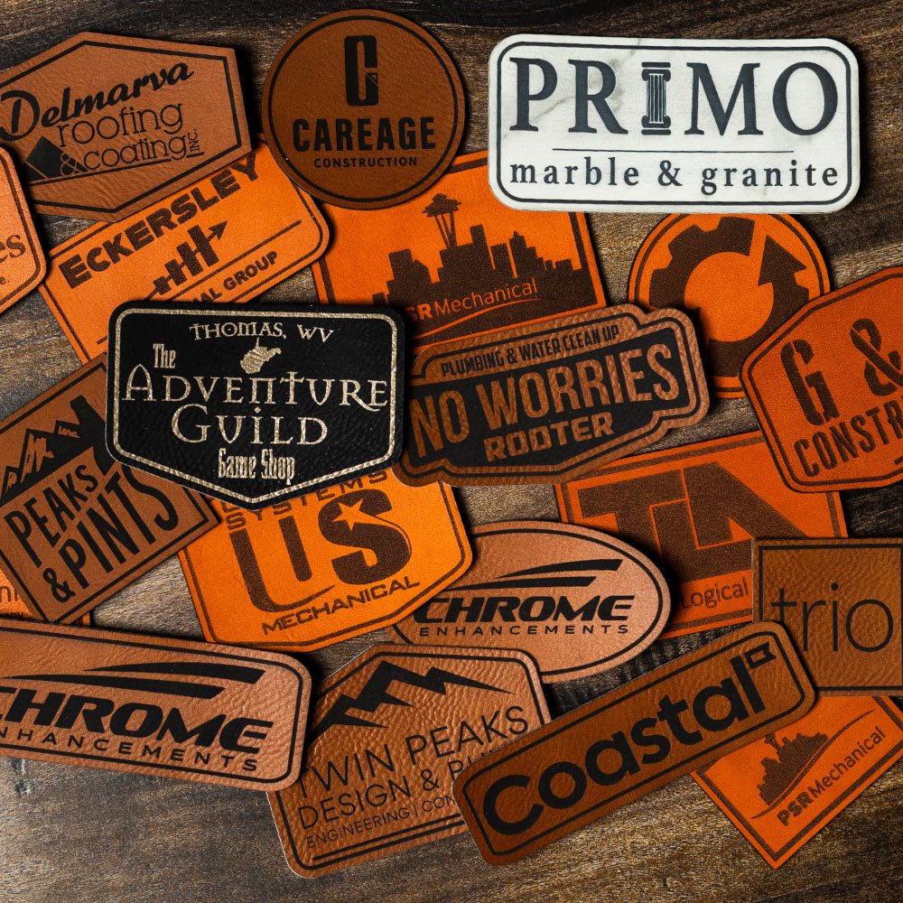 Laser engraved genuine leather for bold 2-tone designs. For high detail designs we also offer faux leather options.