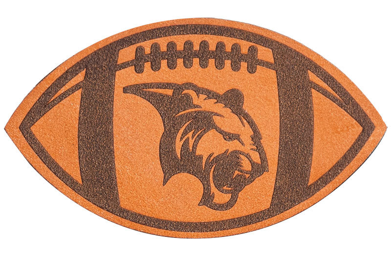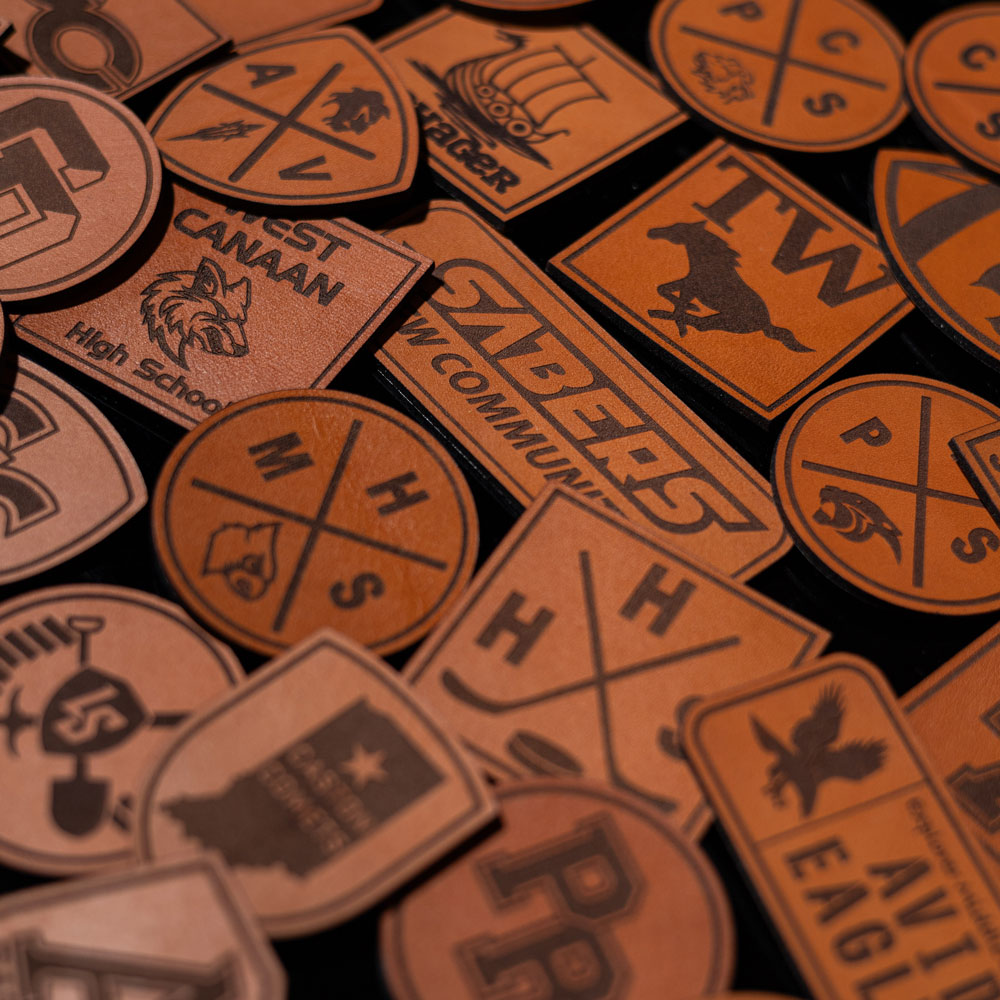 Laser engraved genuine leather for bold 2-tone designs. For high detail designs we also offer faux leather options.
