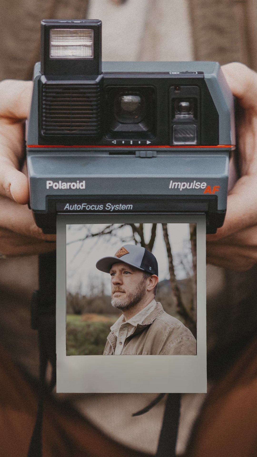 Mountains and Trees Trucker Hat Leather | Gray Black Outdoors Snapback